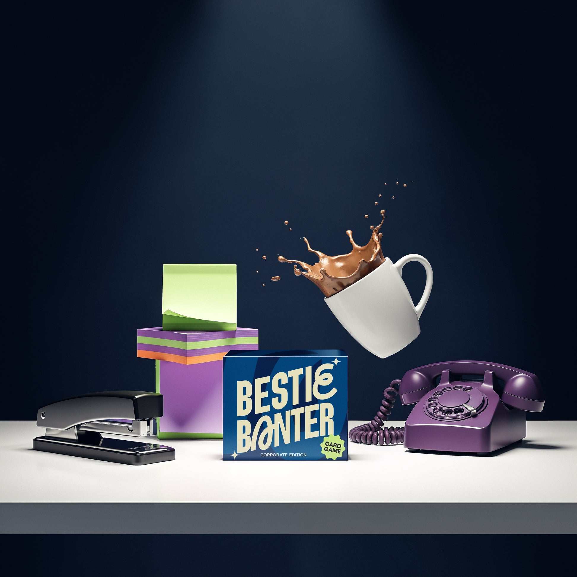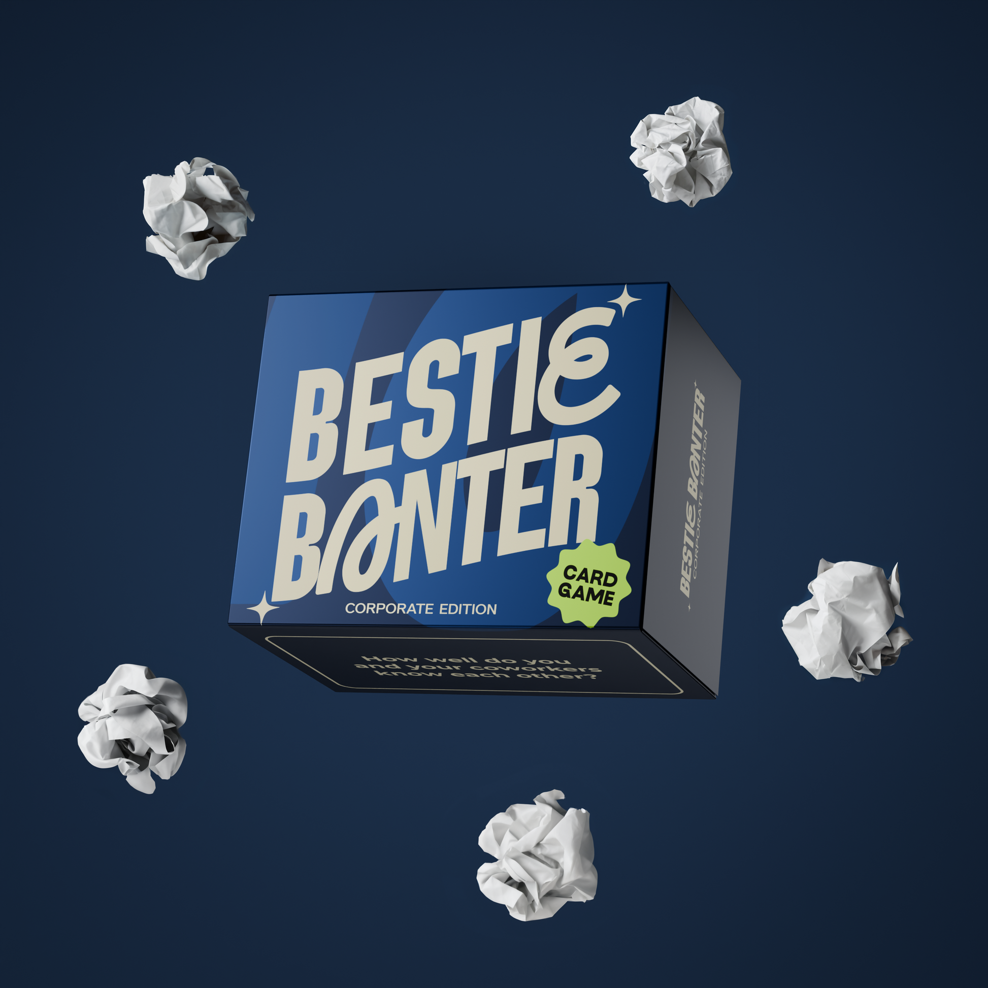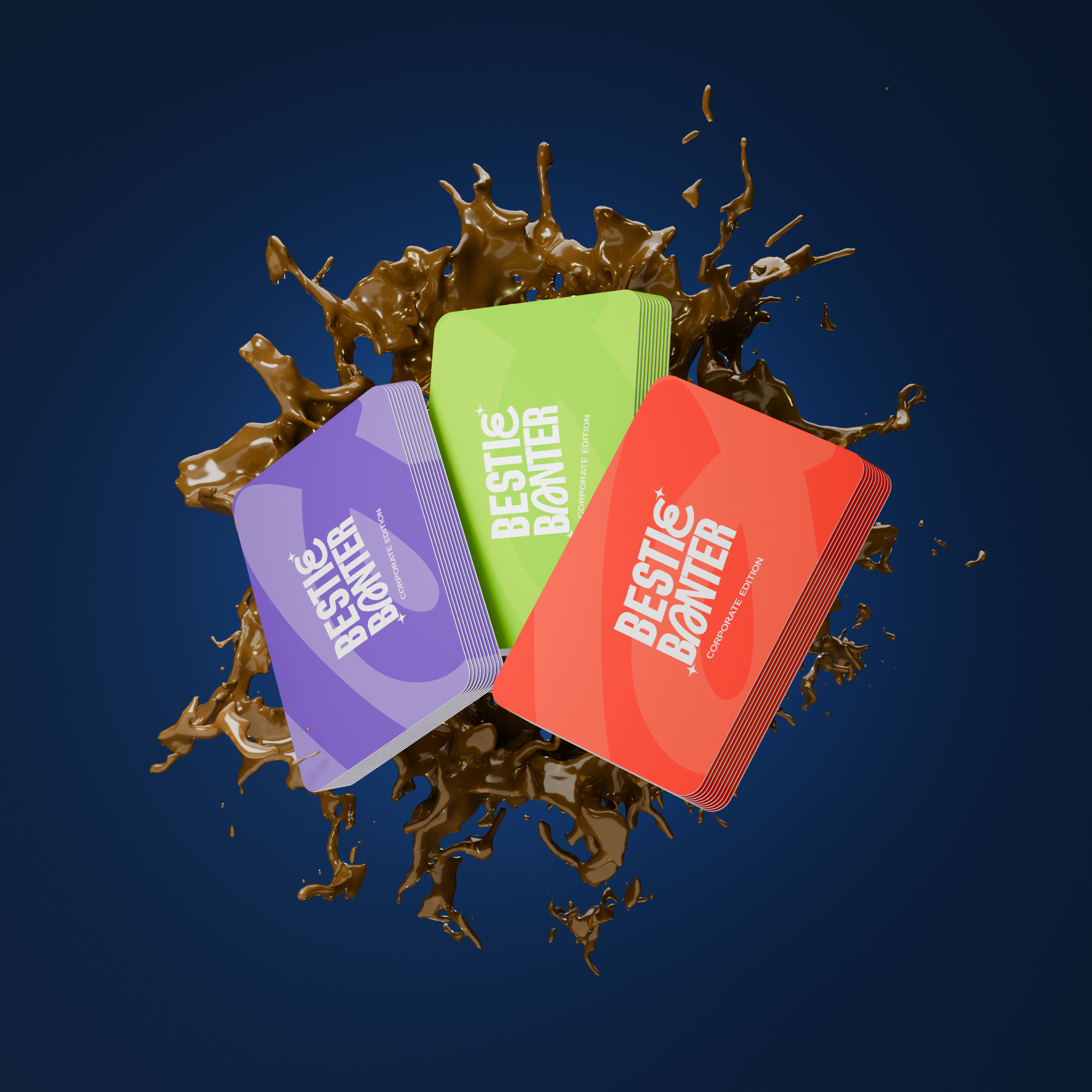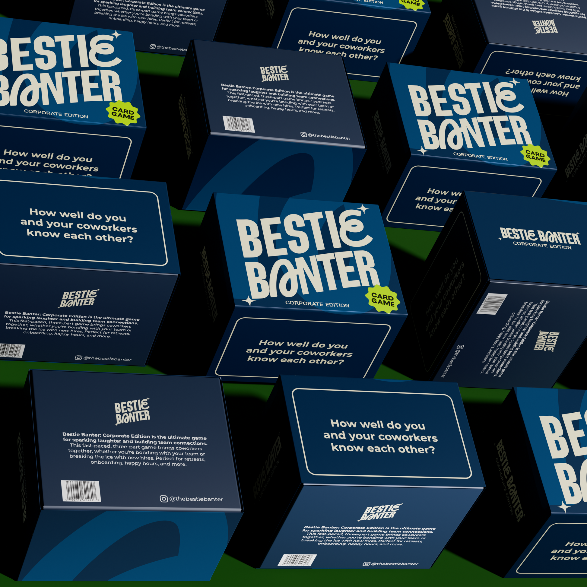 Bestie Banter: Corporate Edition is the ultimate game for sparking laughter and building team connections. This fast-paced, three-part game brings coworkers together, whether you're bonding with your team or breaking the ice with new hires. Perfect for retreats, onboarding, happy hours, and more.